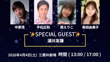 2025年4月4日に三鷹RI劇場で開催された朗読劇&ファンミーティング「Voice for FAN #01」のイベントレポート。平松広和・中原茂・原えりこ・柴田由美子ら豪華声優陣に加え、湖川友謙氏がライブドローイングで参加。物販や会場の様子、当日の企画内容を詳しく紹介。